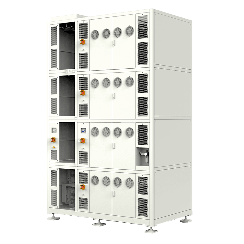 每個庫位根據風道走向,在風道上設計安裝2個煙感器;每個電芯一一對應一個溫度探頭,實時監控電池殼體溫度,煙感和溫控雙重監控方式,有效確保測試安全